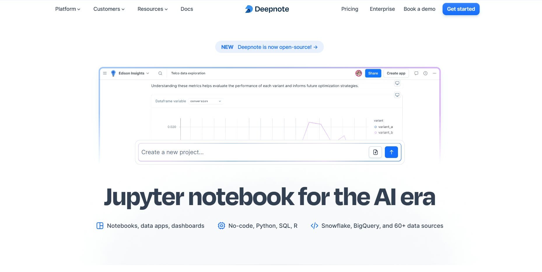Julius bridges the gap between natural language tools like ThoughtSpot and technical notebooks like Deepnote. You get direct answers through conversational queries, but you also see the analysis steps in a Notebook view that you can review, edit, and reuse.