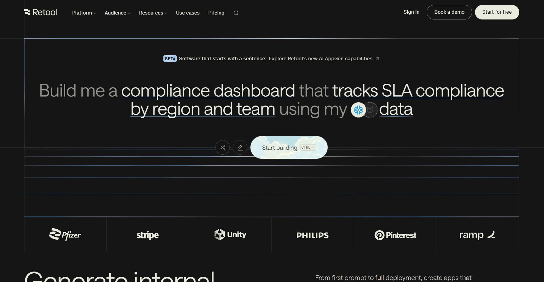 Retool is a low-code platform for building internal applications, admin panels, and dashboards. It uses drag-and-drop components connected to databases and APIs instead of traditional notebook cells.