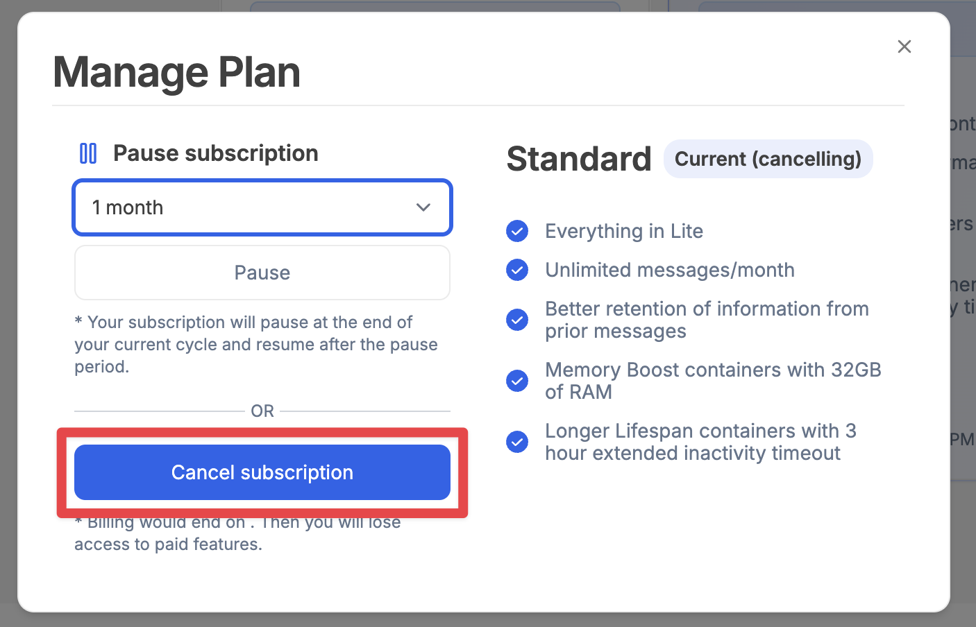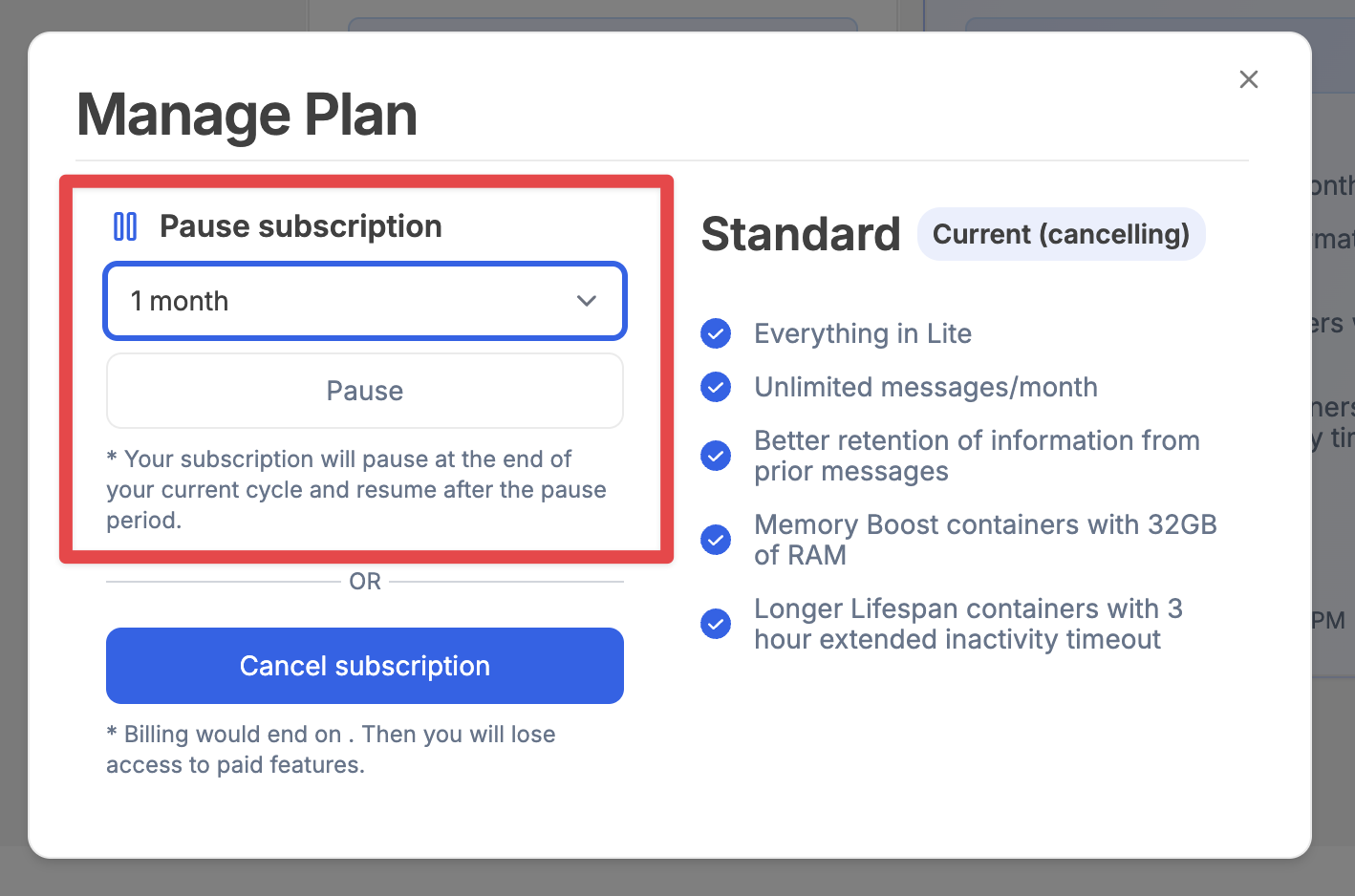 Unsure if you want to cancel? Instead of canceling, you can Pause your subscription for a set amount of time!